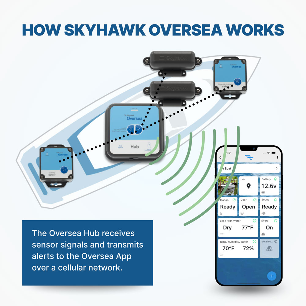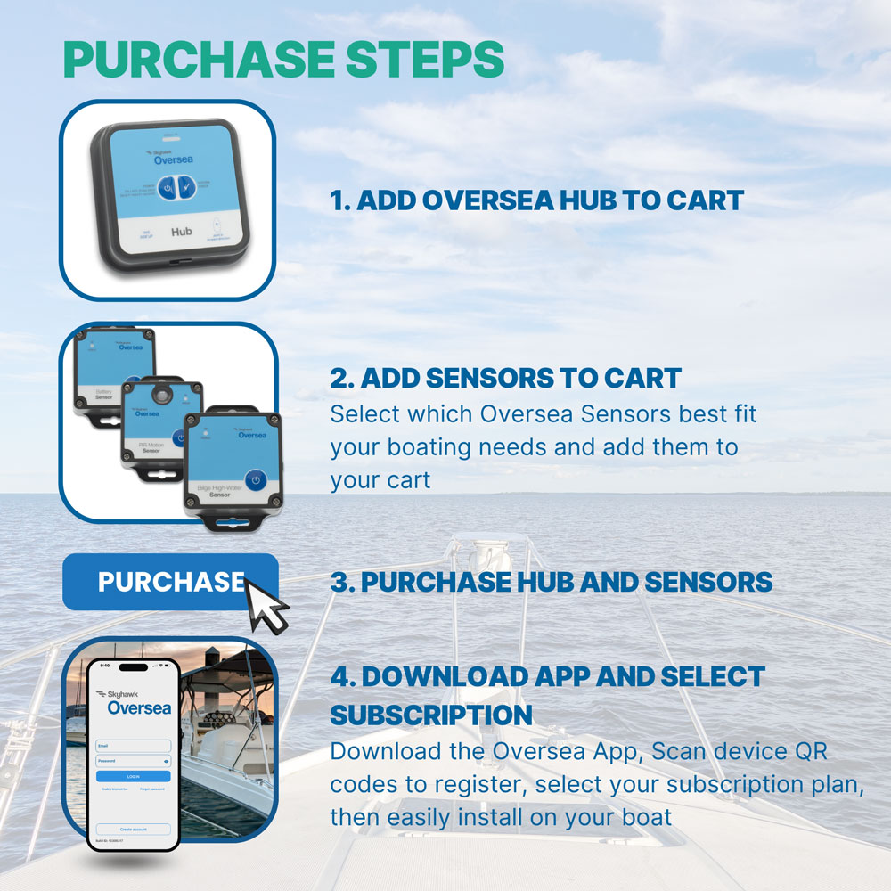 Our self-powered, 100% wireless sensors, require an Oversea Hub near your boat for the sensor to function; you must either own one or have access to a Hub within range. Oversea devices require a subscription to activate, and currently only provides monitoring for boats located in the United States and Canada. You’ll find more information on subscription rates in the adjacent subscription tab.