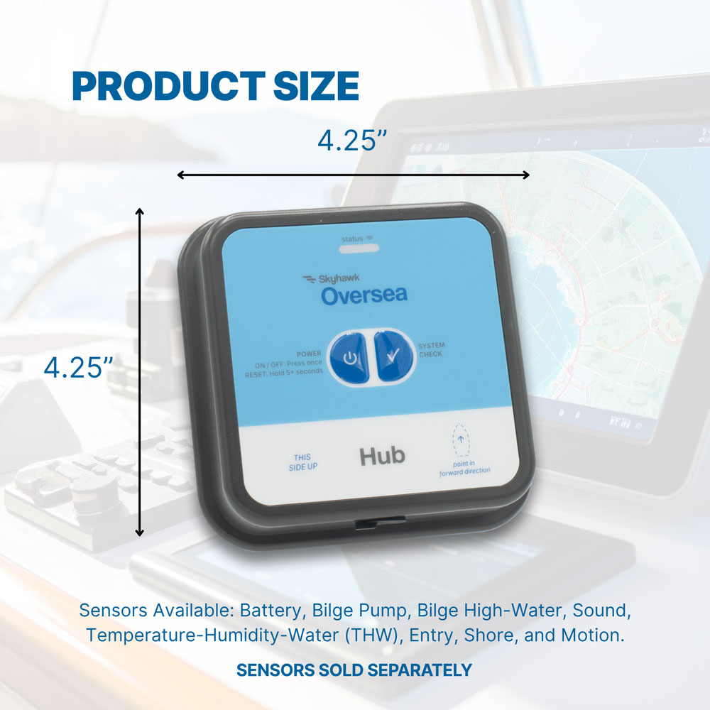 Because the Hub and all sensors are battery powered, Skyhawk Oversea delivers year-round monitoring with no drain on the boat’s batteries. It’s perfect for boats of all types and sizes, whether they’re stored in a marina, on a trailer, on a home dock or boat lift, or even on a mooring.