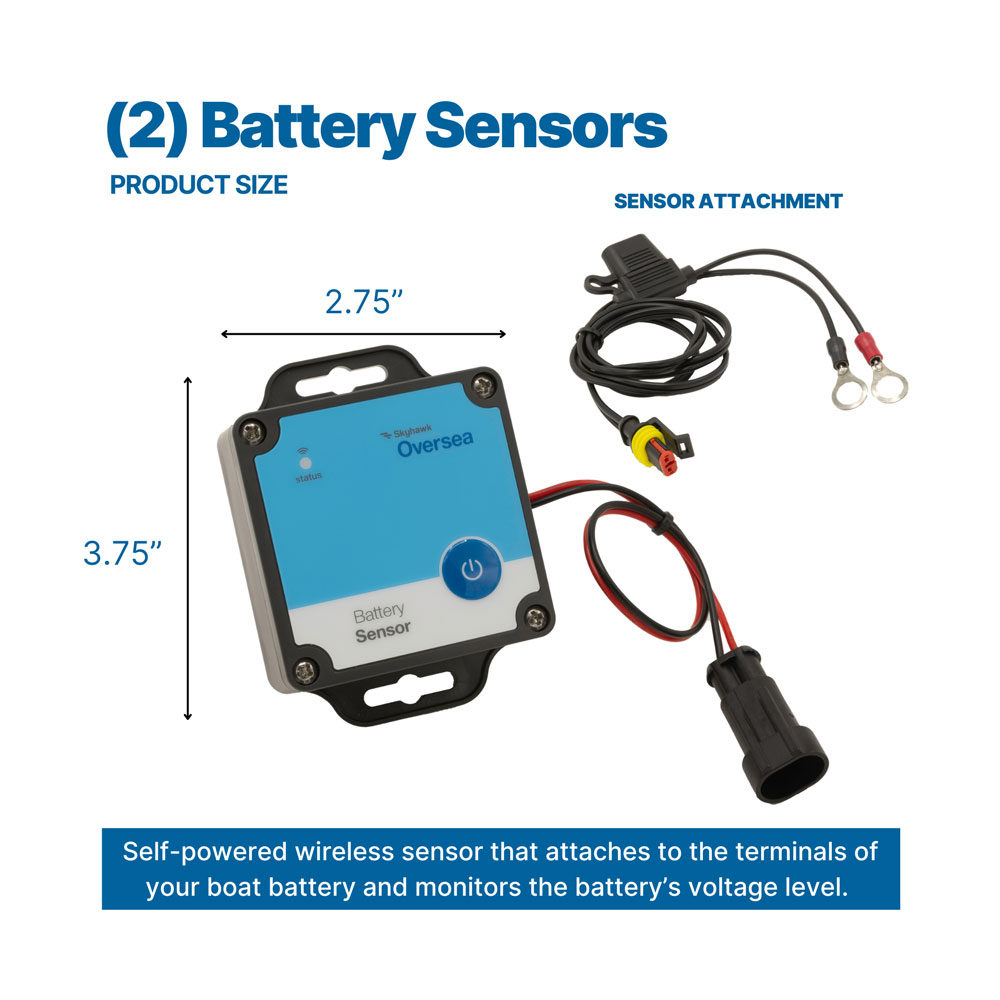 The Oversea Battery Sensor is a self-powered wireless sensor which attaches to the terminals of your boat battery and monitors the battery’s voltage level, so you can know that your boat is fully charged and ready to go when you want to take it out.