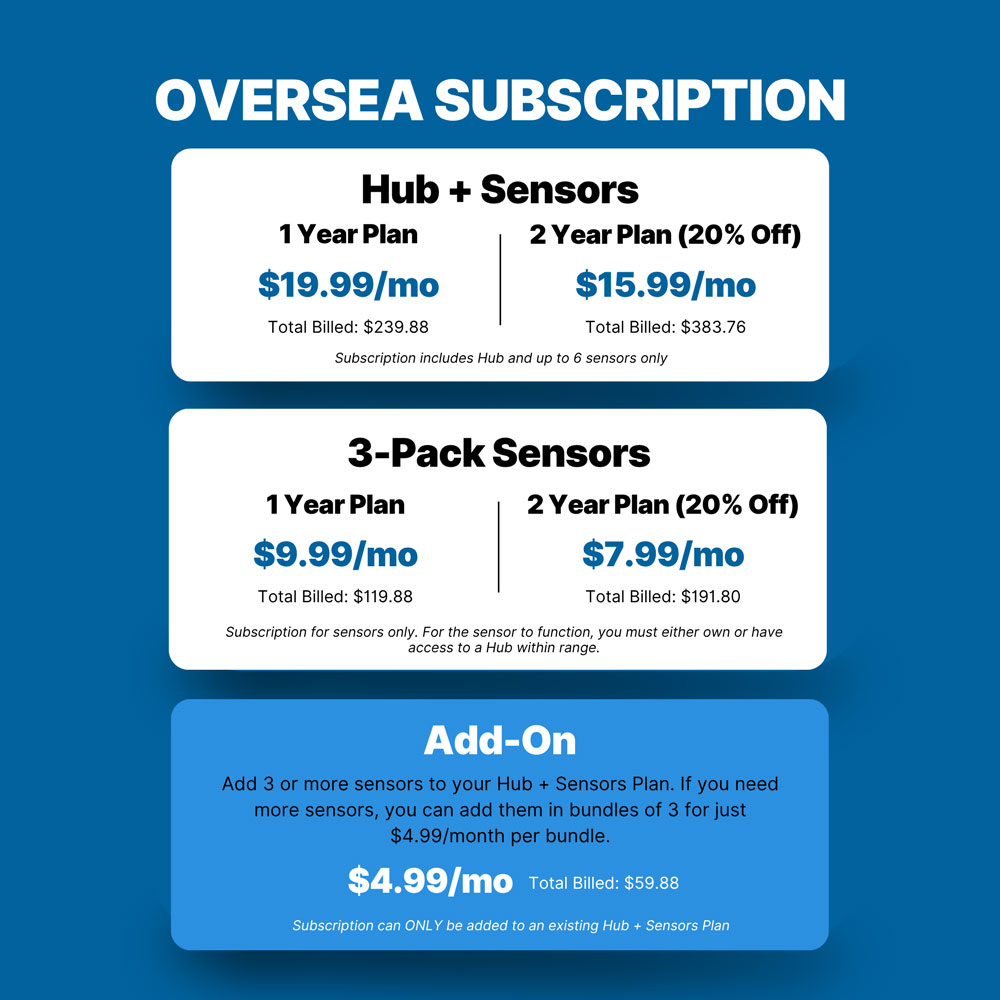 - Subscription includes Hub and up to 6 sensors only